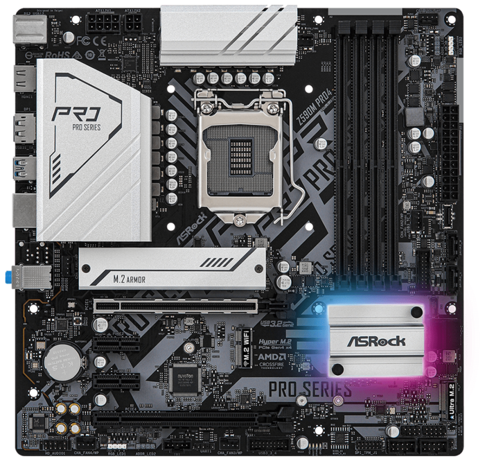 Купить ASRock Материнская плата Socket1200 ASRock Z590M PRO4 (iZ590, 4xDDR4, M.2, SATA III, RAID, 2xPCI-E, HDMI, DP, 1Гбит LAN, USB3.2, mATX) (ret)