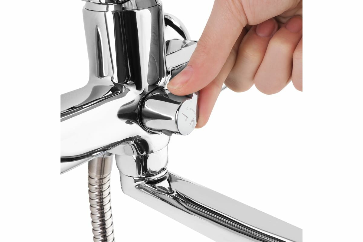 | Минусы: | Немного тугой переключатель смеситель/душ, расположение подключения шланга для душа наводит на размышления, о сложностях замены шланга, после установки смесителя. |