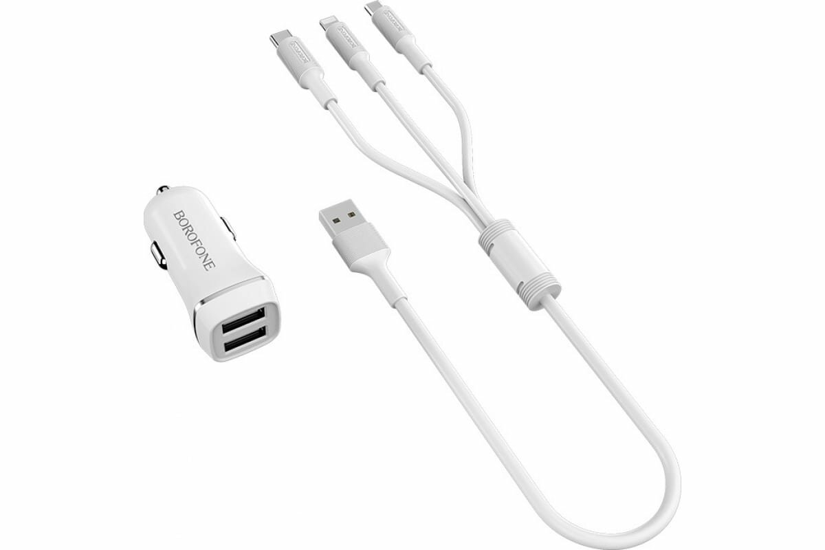 Автомобильная зарядка от прикуривателя Borofone BZ2 два порта USB, 5V, 2.4A, белый интересное: