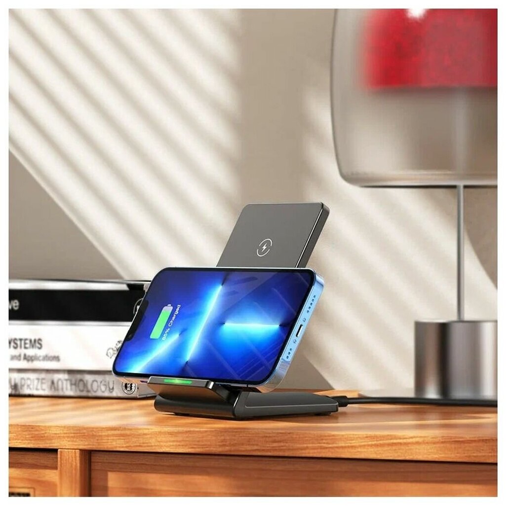 Настольный держатель для смартфона с беспроводной зарядкой 15 Вт, Borofone BQ16, черный.