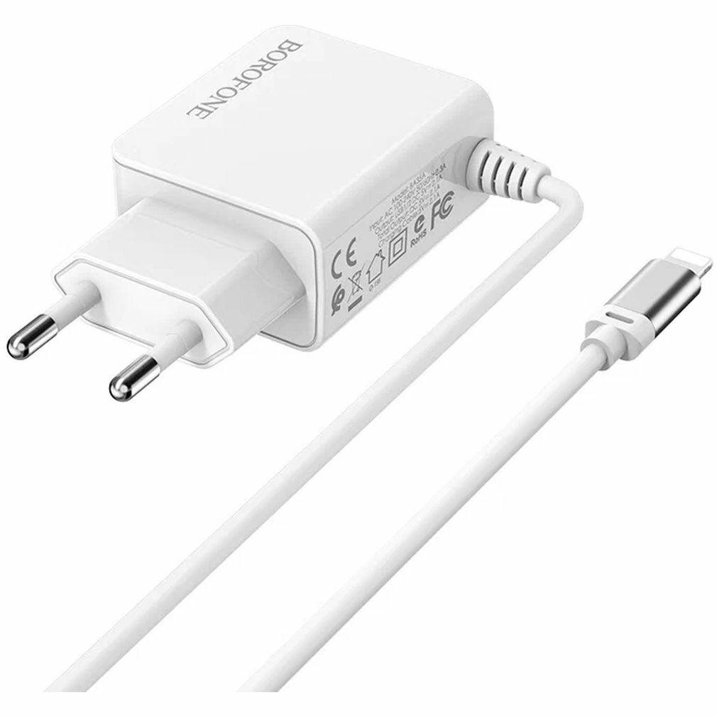 Купить Сетевое зарядное устройство Borofone BA35A Brilliant с кабелем Lightning, белый
