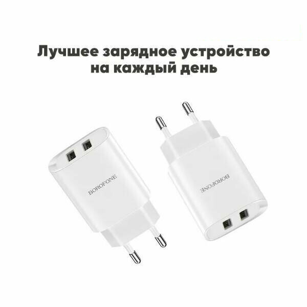 Сетевое зарядное устройство USB Type A Borofone BN2 2.1A белый для смартфона Apple и Android интересное: