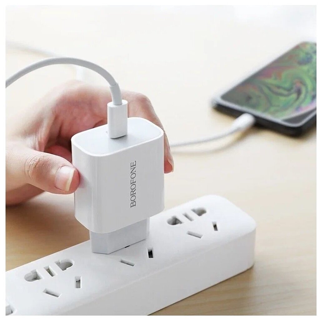 Сетевое зарядное устройство + кабель для iP Lighting to Type-C Borofone BA38A PD+QC3.0 20W белый интересное: