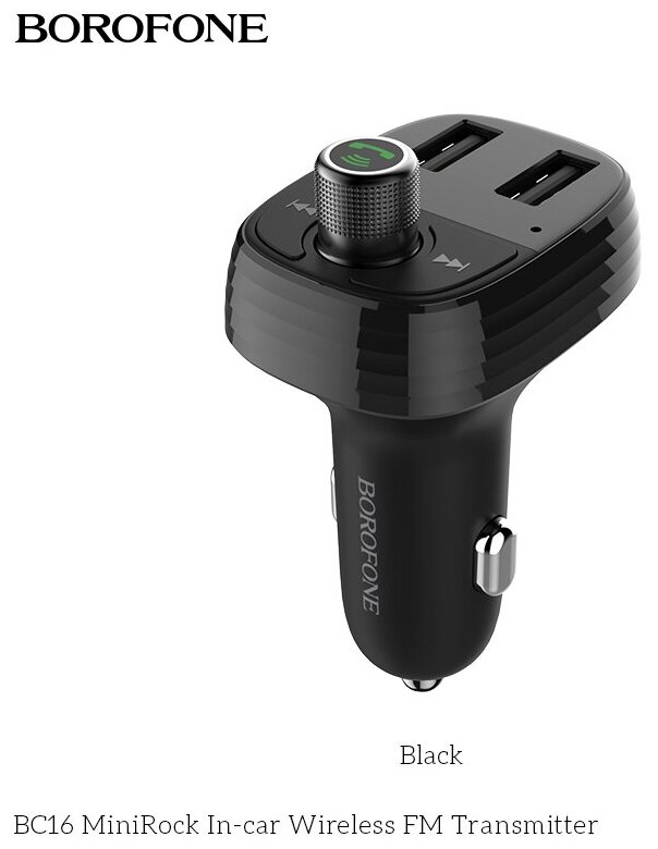 Автомобильное зарядное устройство Borofone BC16 Black 2 USB-порта 3А + FM-трансмиттер, черный