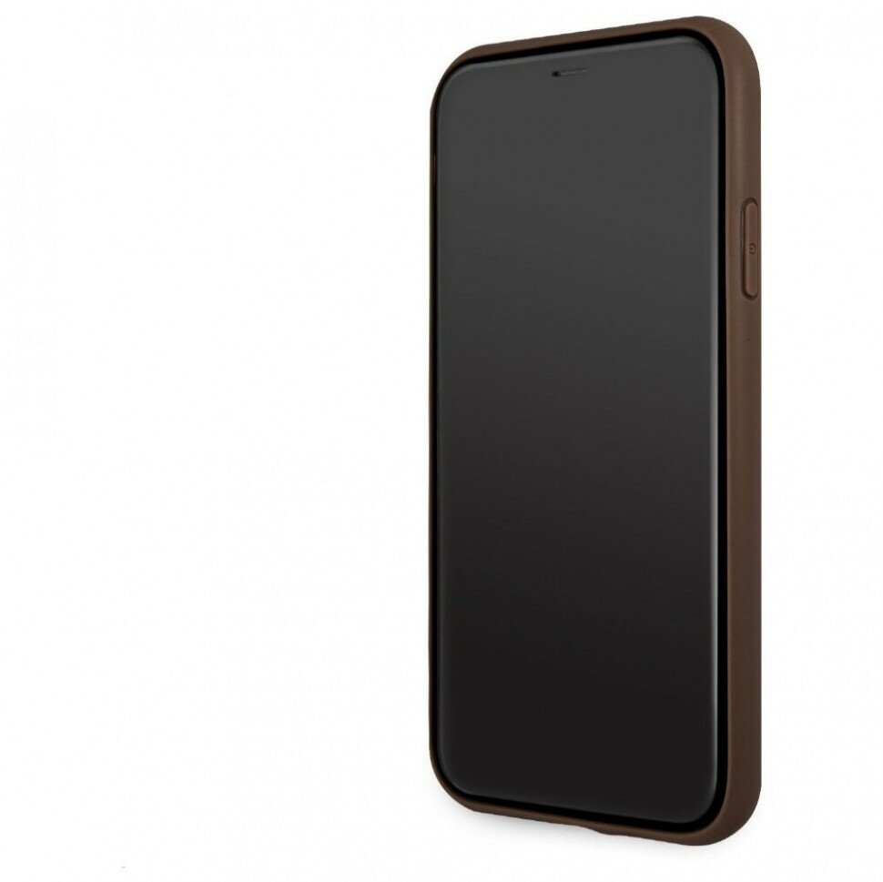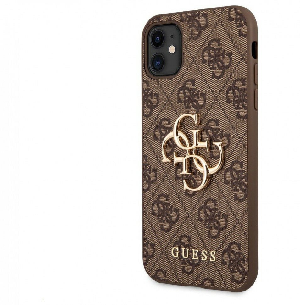 Guess для iPhone 11 чехол PU 4G Big metal logo Hard Brown интересное: