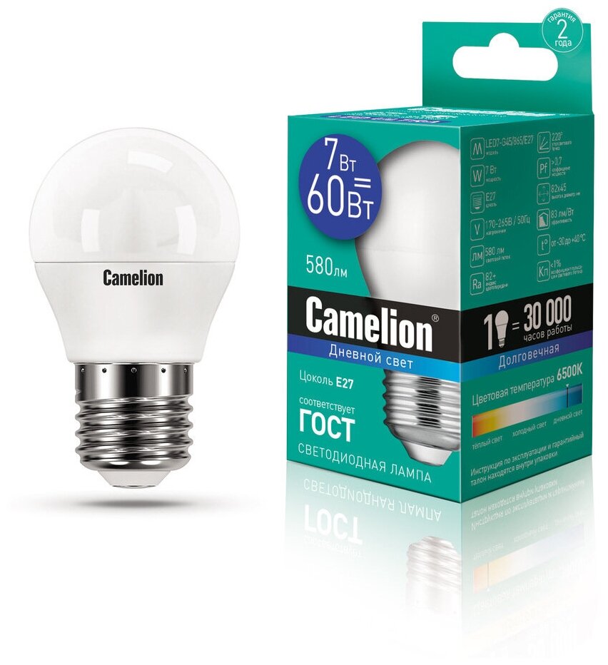 Светодиодная лампа Camelion LED7-G45/865/E27 7Вт 220В 12647 интересное: