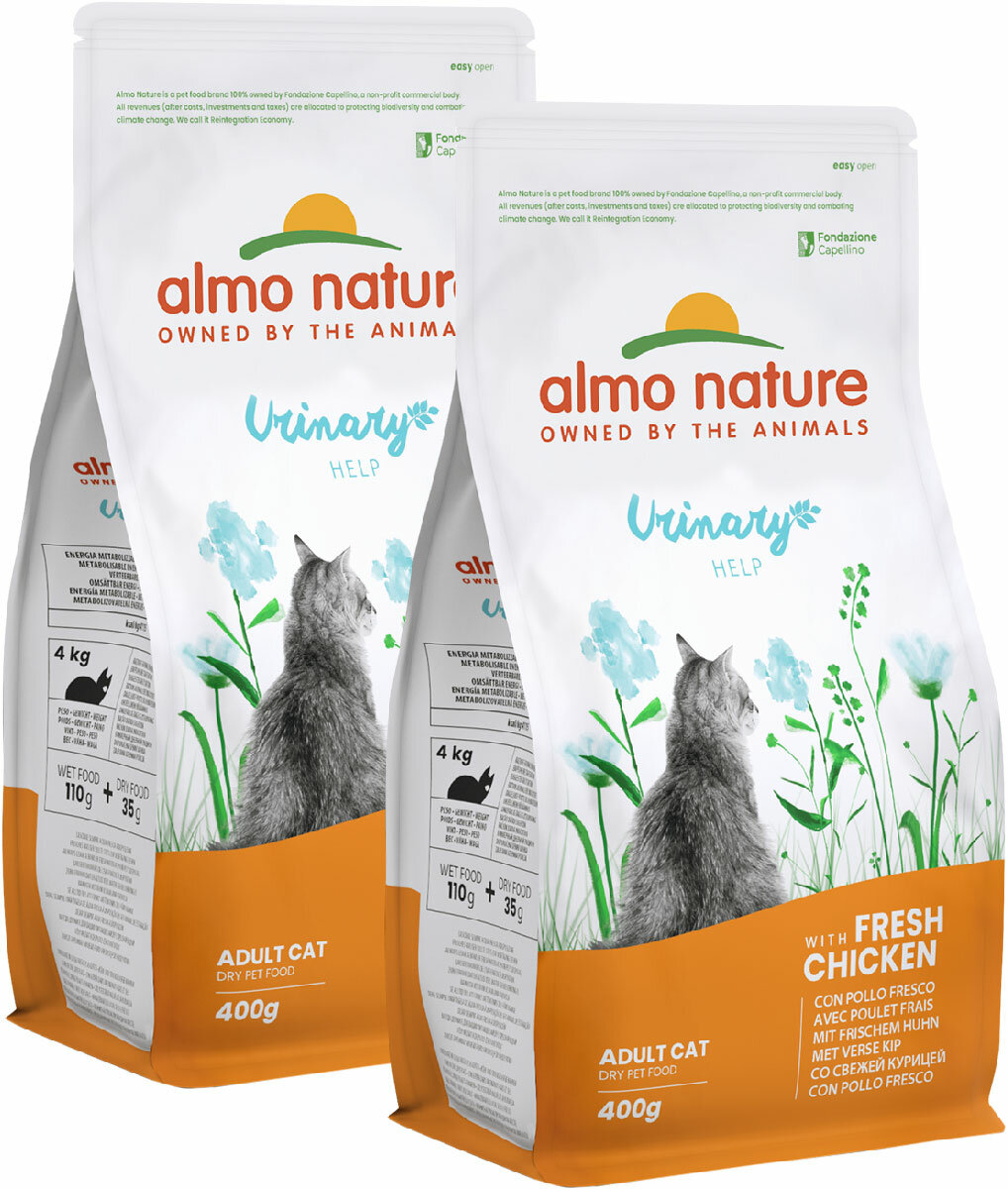 ALMO NATURE ADULT CAT HOLISTIC URINARY HELP для взрослых кошек при мочекаменной болезни с курицей (0,4 + 0,4 кг) интересное: