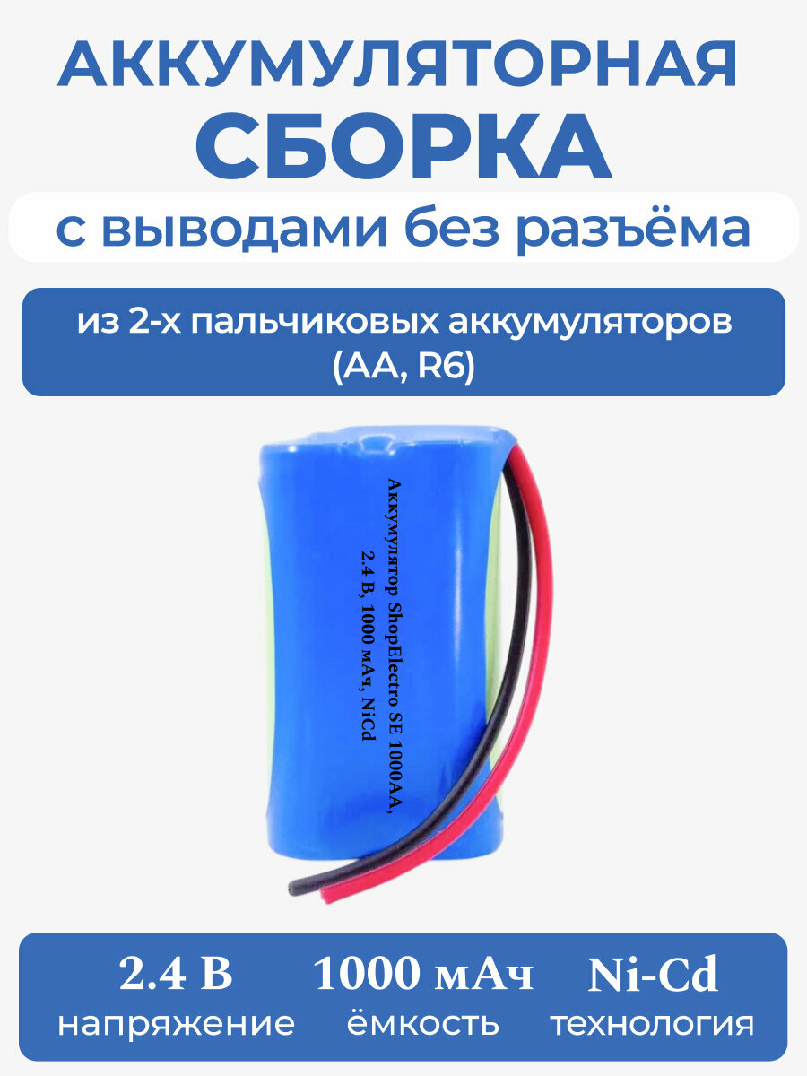 Аккумулятор ShopElectro SE1000АА, 2.4 В, 1000 мАч/ 2.4 V, 1000 mAh, NiCd, с выводами, без разъёма интересное: