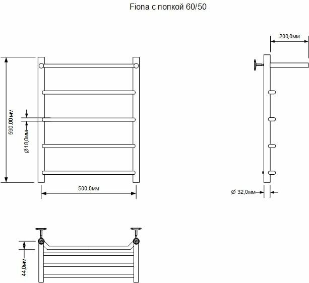 Полотенцесушитель водяной Aquanet Fiona с полкой 600x500 интересное: