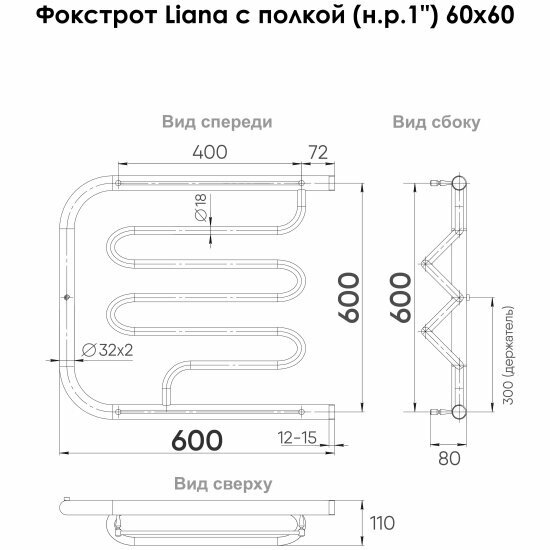 Полотенцесушитель Indigo® INDIGO FLW60-60P Фокстрот Liana с/п (н.р.1") 60/60 с держателем интересное: