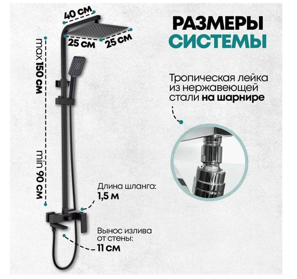 | Форма бокового душа | квадратная |