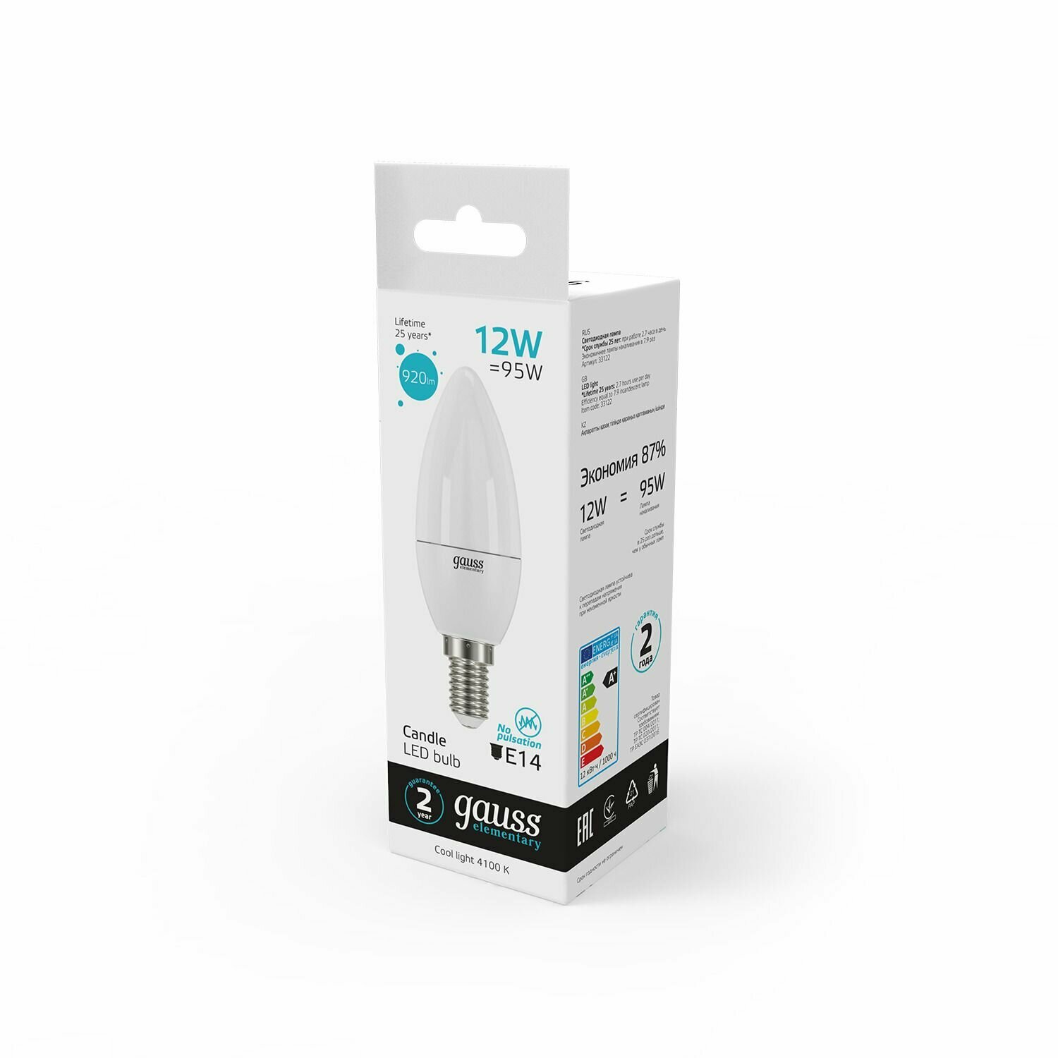 Лампа светодиодная gauss 33122, E14, 12 Вт, 4100 К