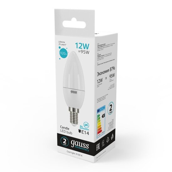 Ниже Вы можете прочитать отзывы на Светодиодная лампа Gauss LED Elementary Свеча 12W 920lm E14 4100K 1/10/100, ознакомится с подробными характеристиками, посмотреть интересные обзоры и фотографии на Светодиодная лампа Gauss LED Elementary Свеча 12W 920lm E14 4100K 1/10/100.