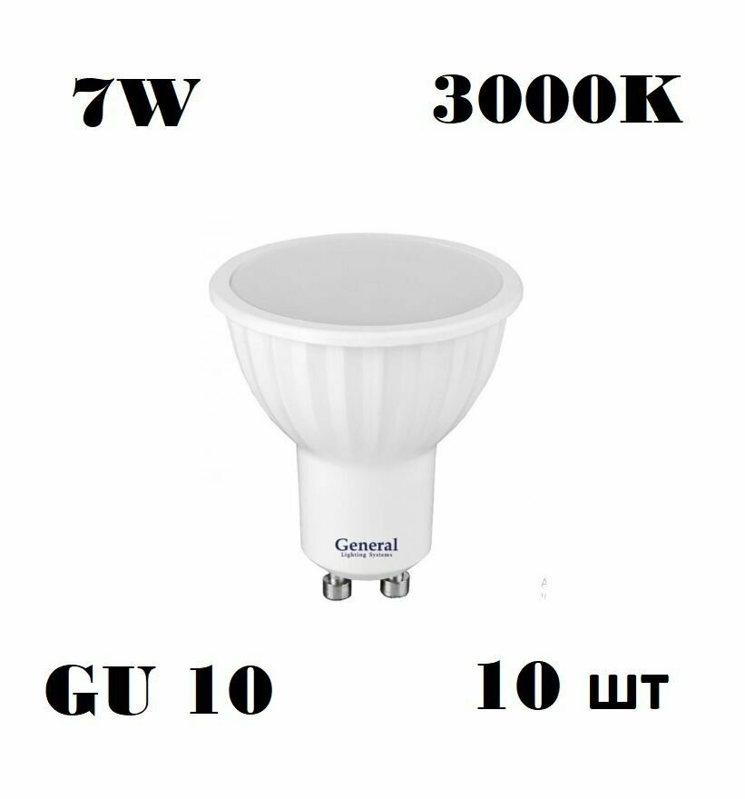 (2 шт.) Светодиодная лампочка General MR16 GU10 7W 3000K 3K 50x56 пластик/алюм 660314