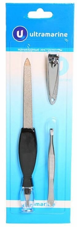 Ultramarine Набор маникюрный, 3 предмета: пилка с триммером, книпсер, пинцет