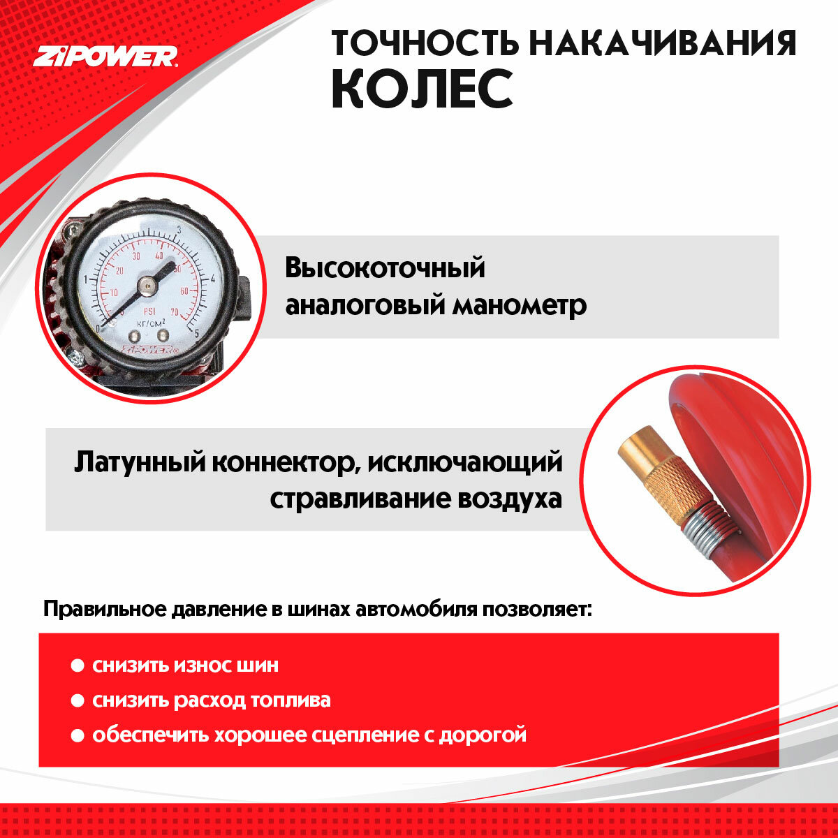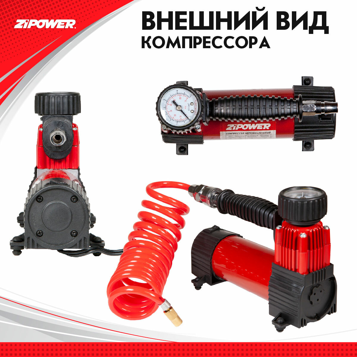 Компрессор автомобильный 12В, 180 Вт, 25л/мин. ZIPOWER PM6500 интересное: