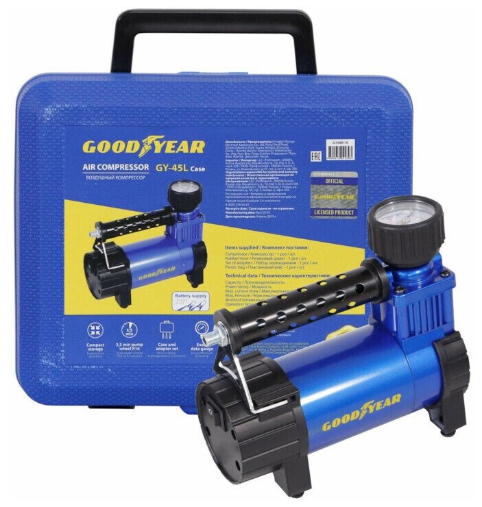 GoodYear GY000116 Компрессор (45 л/мин) 10 Атм "GOODYEAR" GY-45L (кейс)