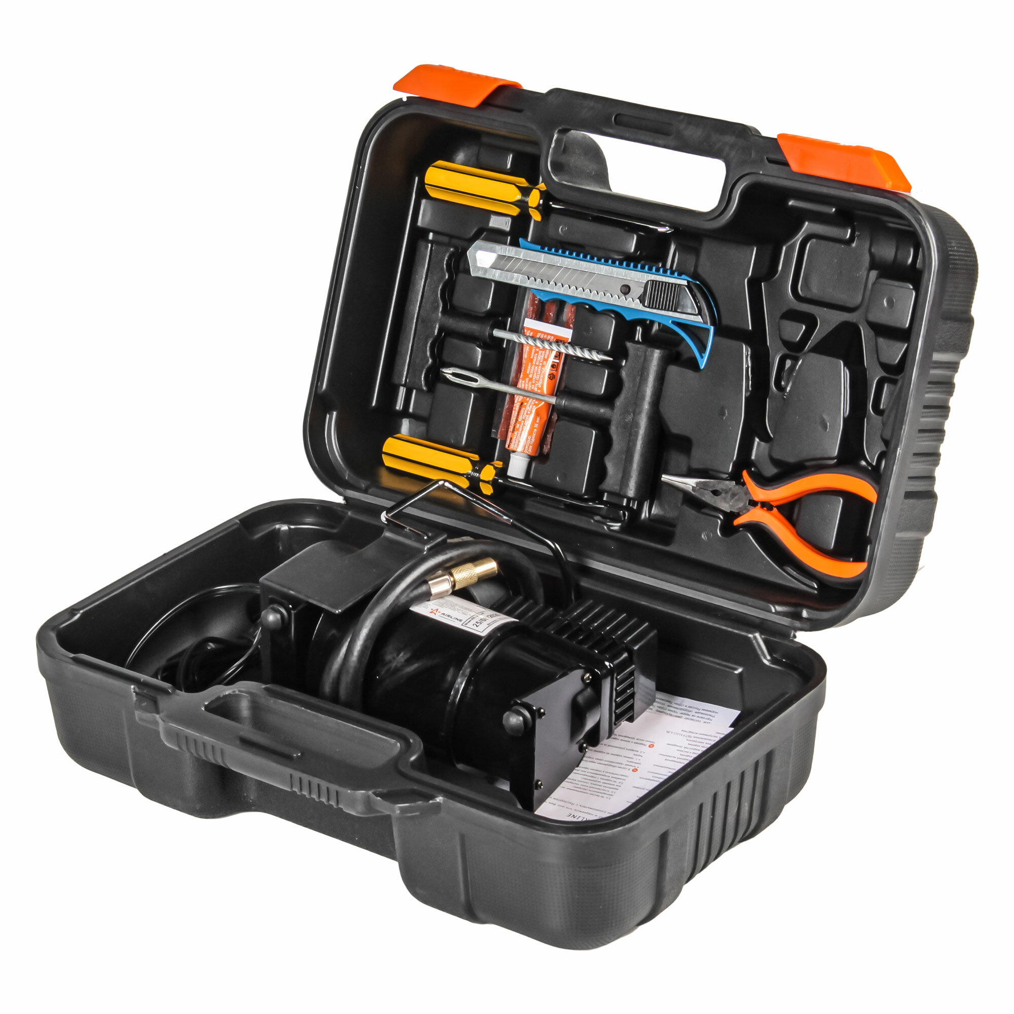 Компрессор AIRLINE TORNADO S, с набором инструментов (отвертки, ремкомплект, нож, плоcкогубцы)