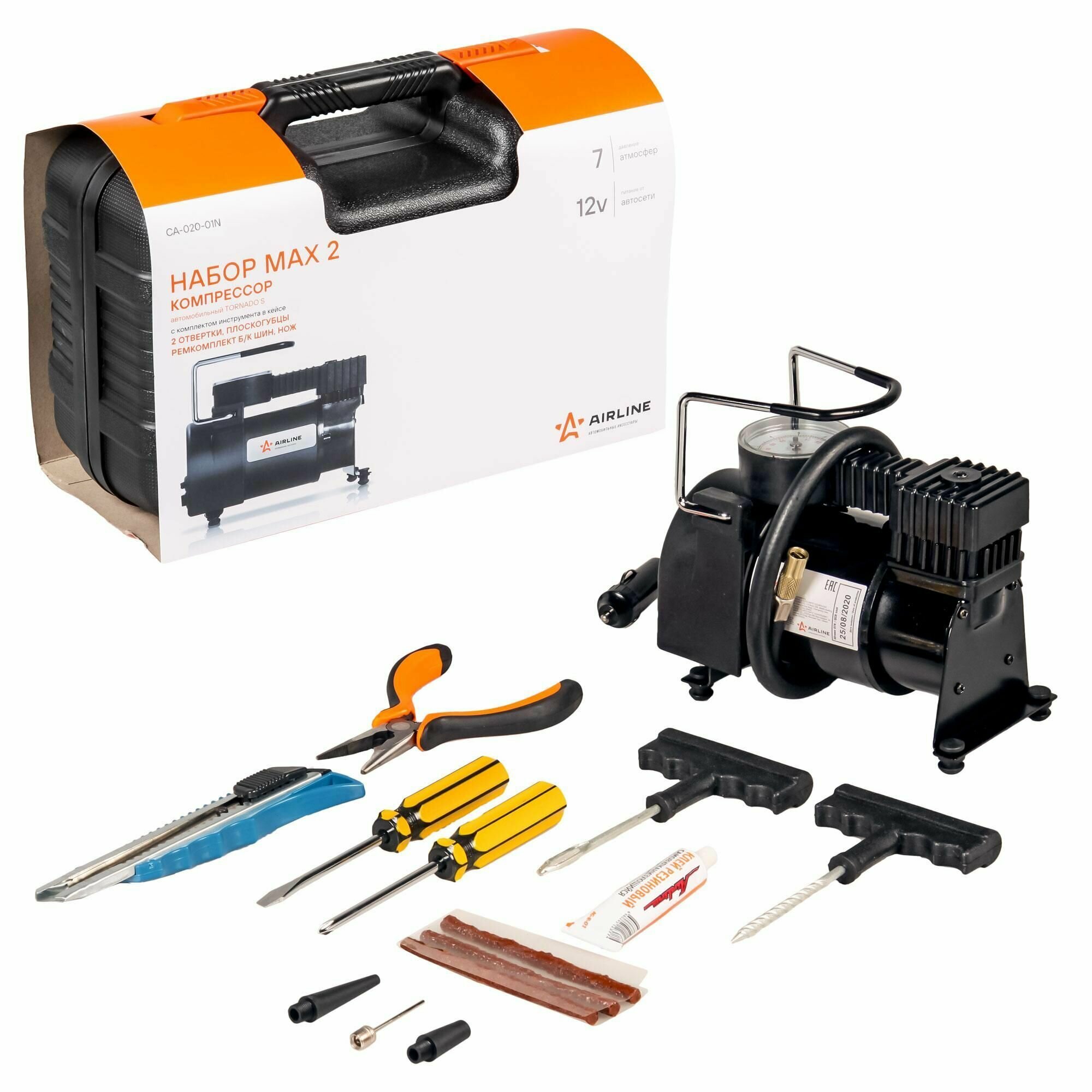 AIRLINE CA02001N CA-020-01N_компрессор! TORNADO S с кмпл инстр. в кейсе (2отверт., ремкомп.б/к шин, нож, плоcкогуб.)\ 1шт