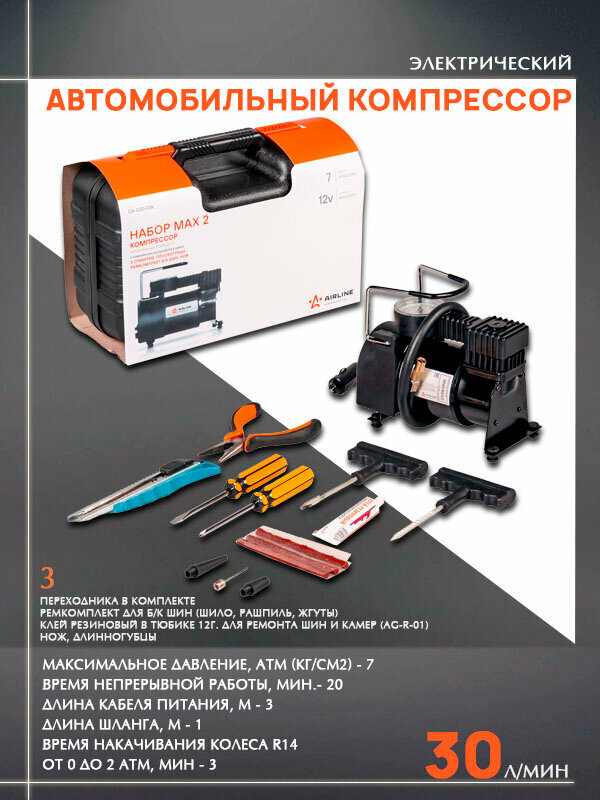 Автомобильный компрессор AIRLINE Набор MAX 1 CA-020-01