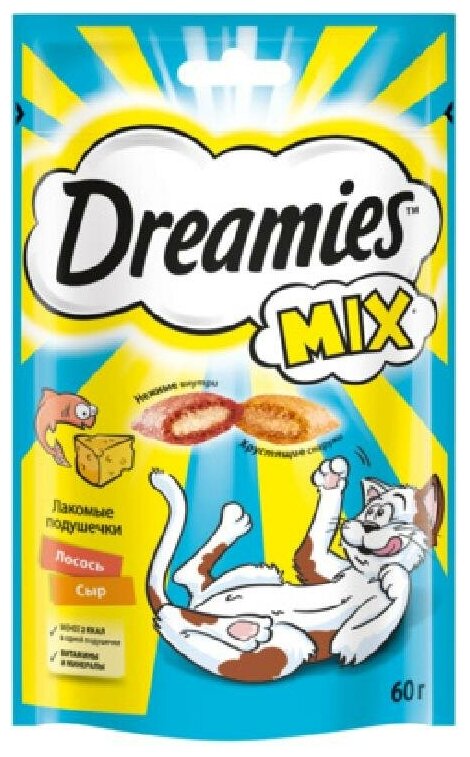 Dreamies Лакомство Dreamies MIX для взрослых кошек с лососем и сыром 60г 10222407 10236787 0,06 кг 44663 (2 шт) интересное:
