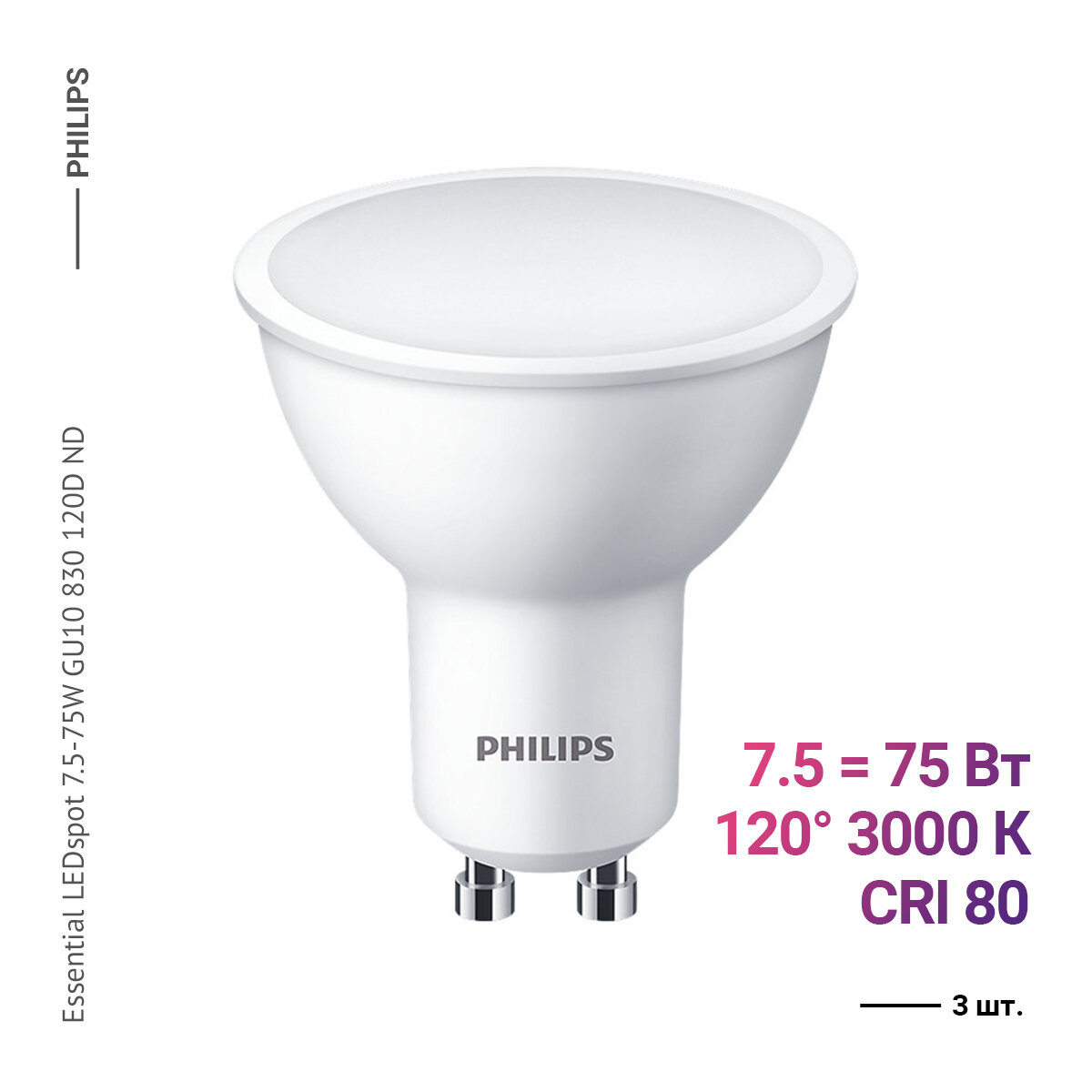 Купить Philips Essential LEDspot 7.5-75W GU10 830 120D ND (3 шт.)