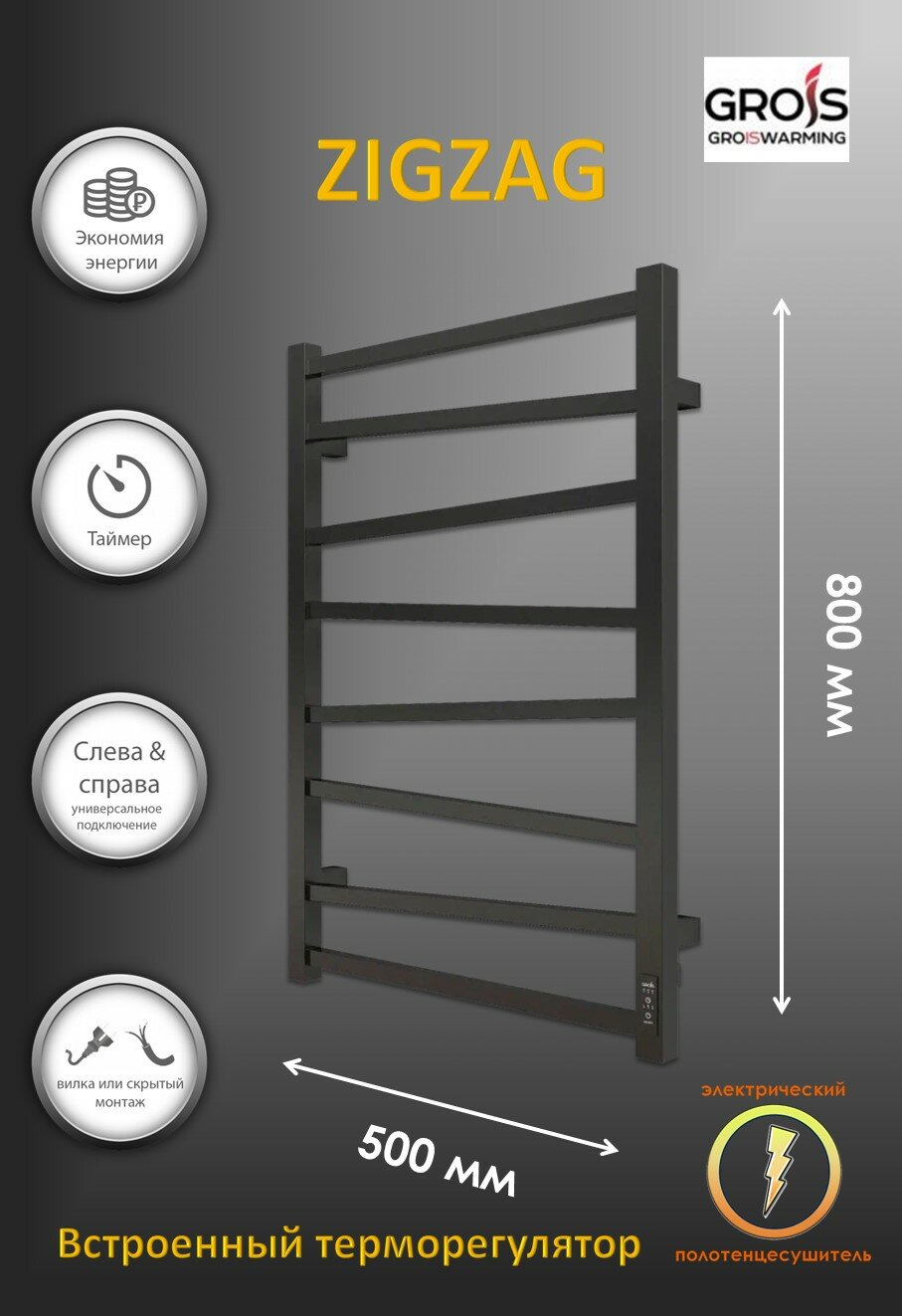 Электрический полотенцесушитель Grois ZIGZAG GR-103 500х800 П8 RAL9005 черный матовый