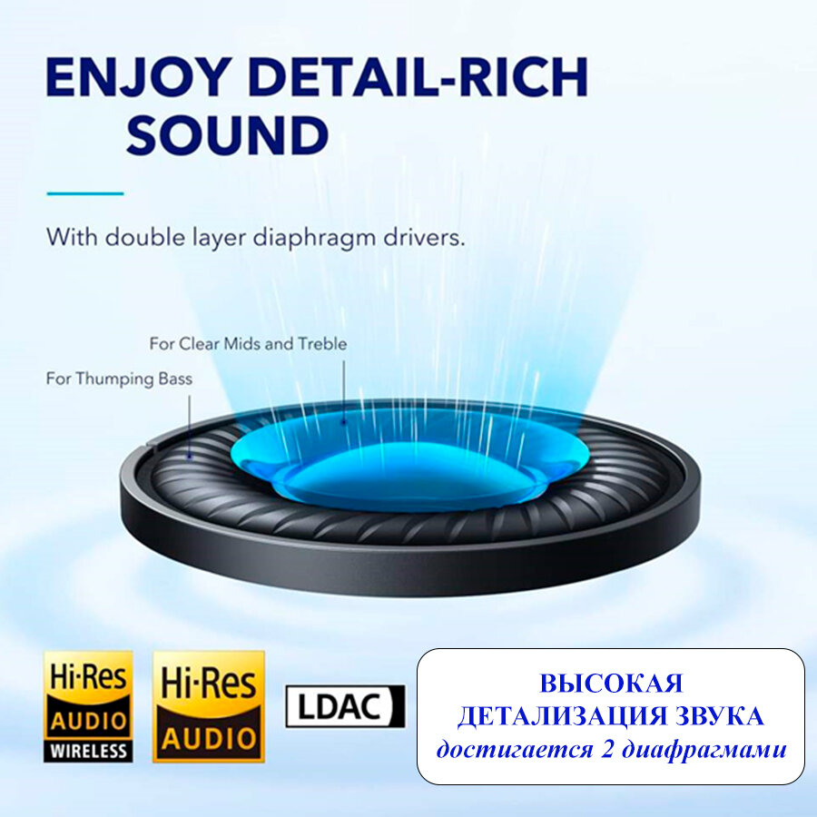 | Плюсы: | Anker Soundcore на высоте. Чистый звук, хорошее наполнение, объем, басы, да и любые частоты - все на высоте. Шумодав зачетный, реально работает, как надо. |