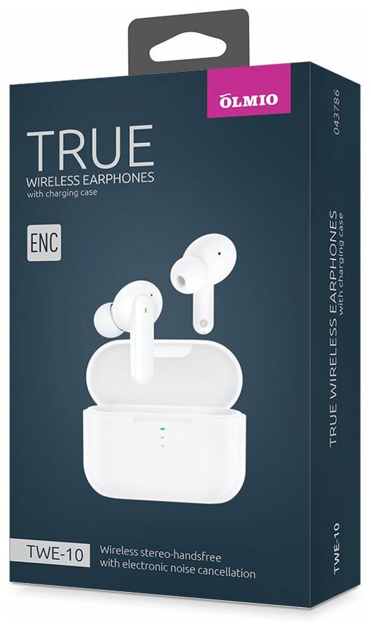 Купить Наушники внутриканальные беспроводные Olmio TWE-10 с магнитным зарядным футляром, Bluetooth 5.0, белые