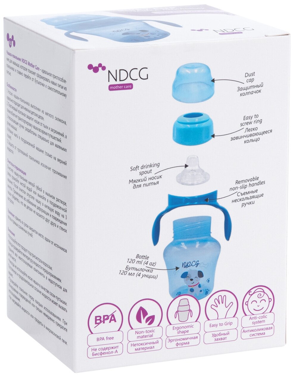 Купить Поильник чашка NDCG Mother Care с 6 месяцев 120 мл голубой