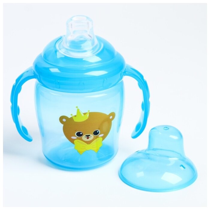 Поильник - непроливайка детский с мягким носиком "Мишка принц", 250 мл, с ручками, цвет голубой
