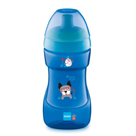 Купить Поильник спортивный MAM Sports Cup со спортивным затвором и клапаном - «непроливайка», голубой, 12мес+ 330 мл