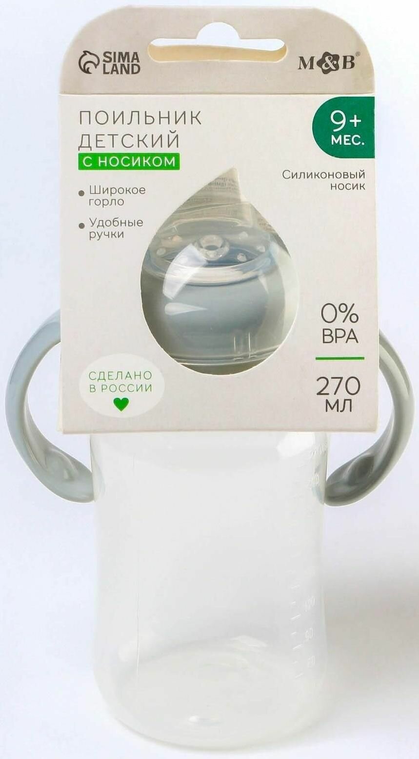 Поильник - непроливайка детский с мягким носиком M&B, 270 мл, с ручками, серый
