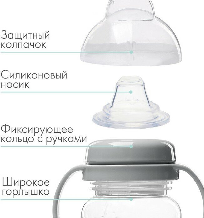 Поильник - непроливайка детский с мягким носиком, 270 мл, с ручками, цвет серый