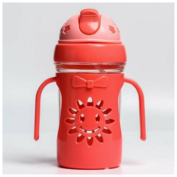 Купить Поильник с трубочкой «Солнышко» со сдвигаемой крышкой, 300 мл., с ручками, цвета сюрприз