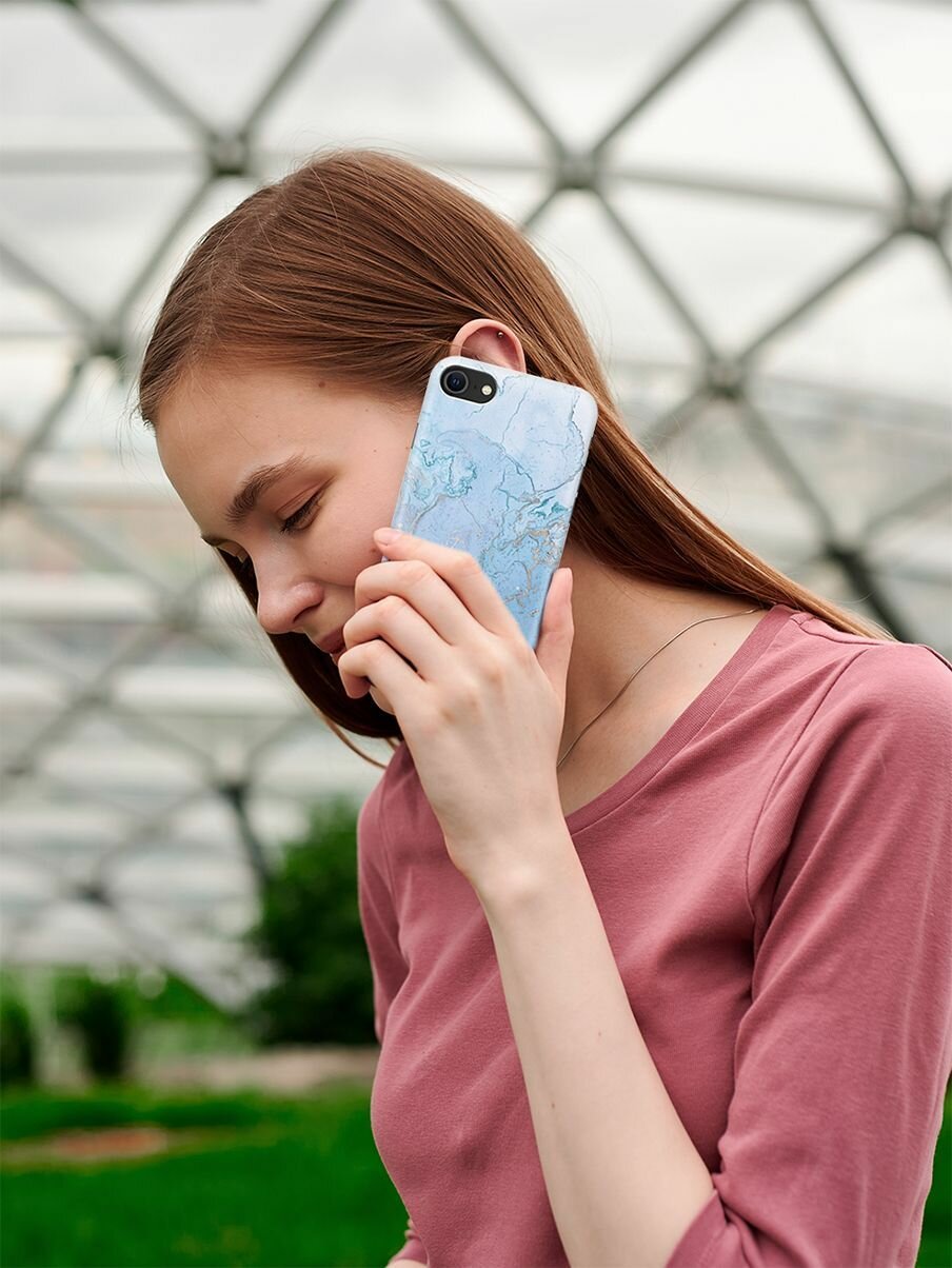Чехол - накладка ArtColor для Apple iPhone 7 / 8 / SE (2020) с принтом "Голубой мрамор" интересное: