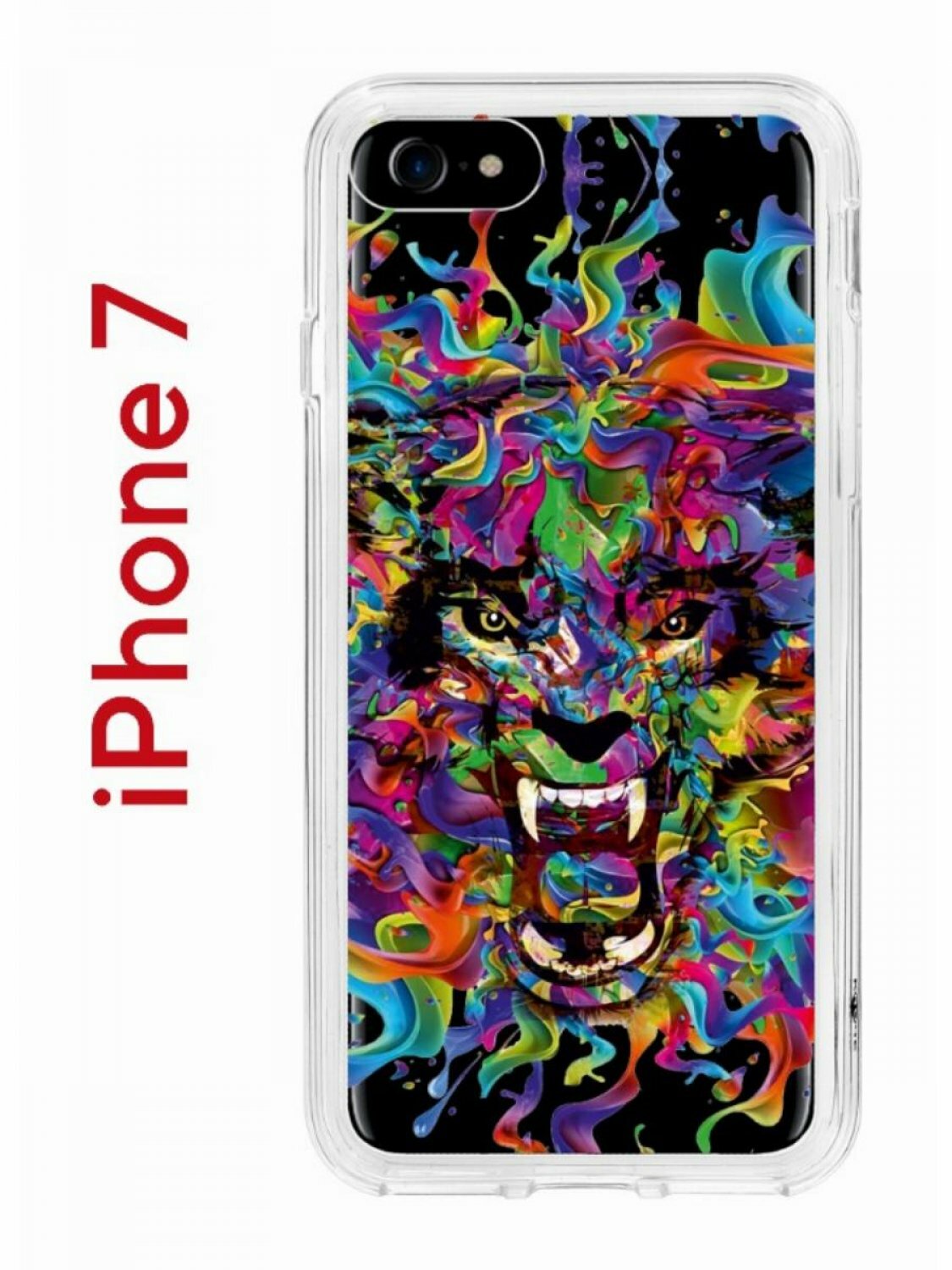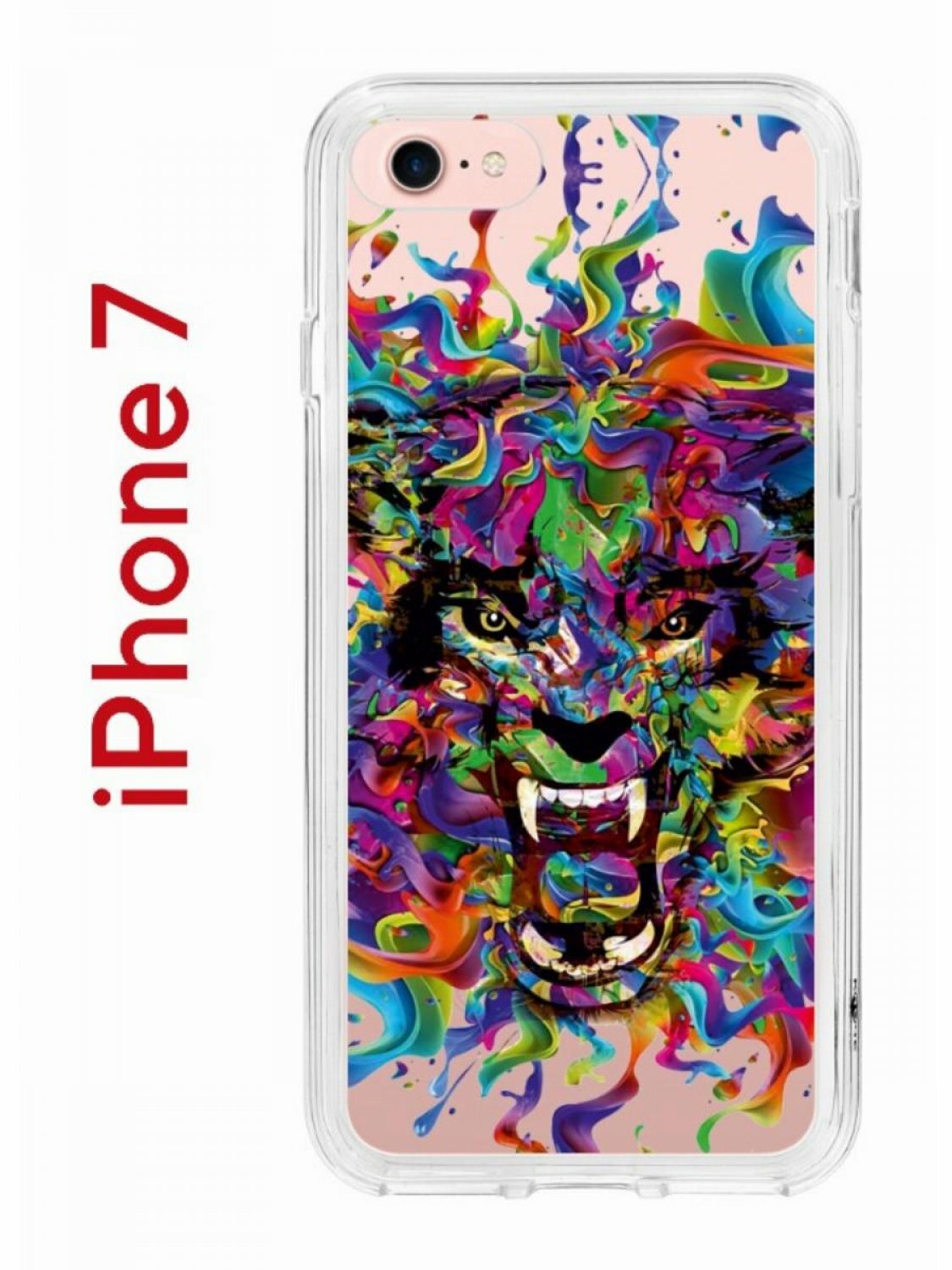 Чехол для iPhone 7/8/SE 2020 Kruche Print Colored beast,противоударная пластиковая накладка с рисунком,силиконовый бампер с принтом и защитой камеры интересное: