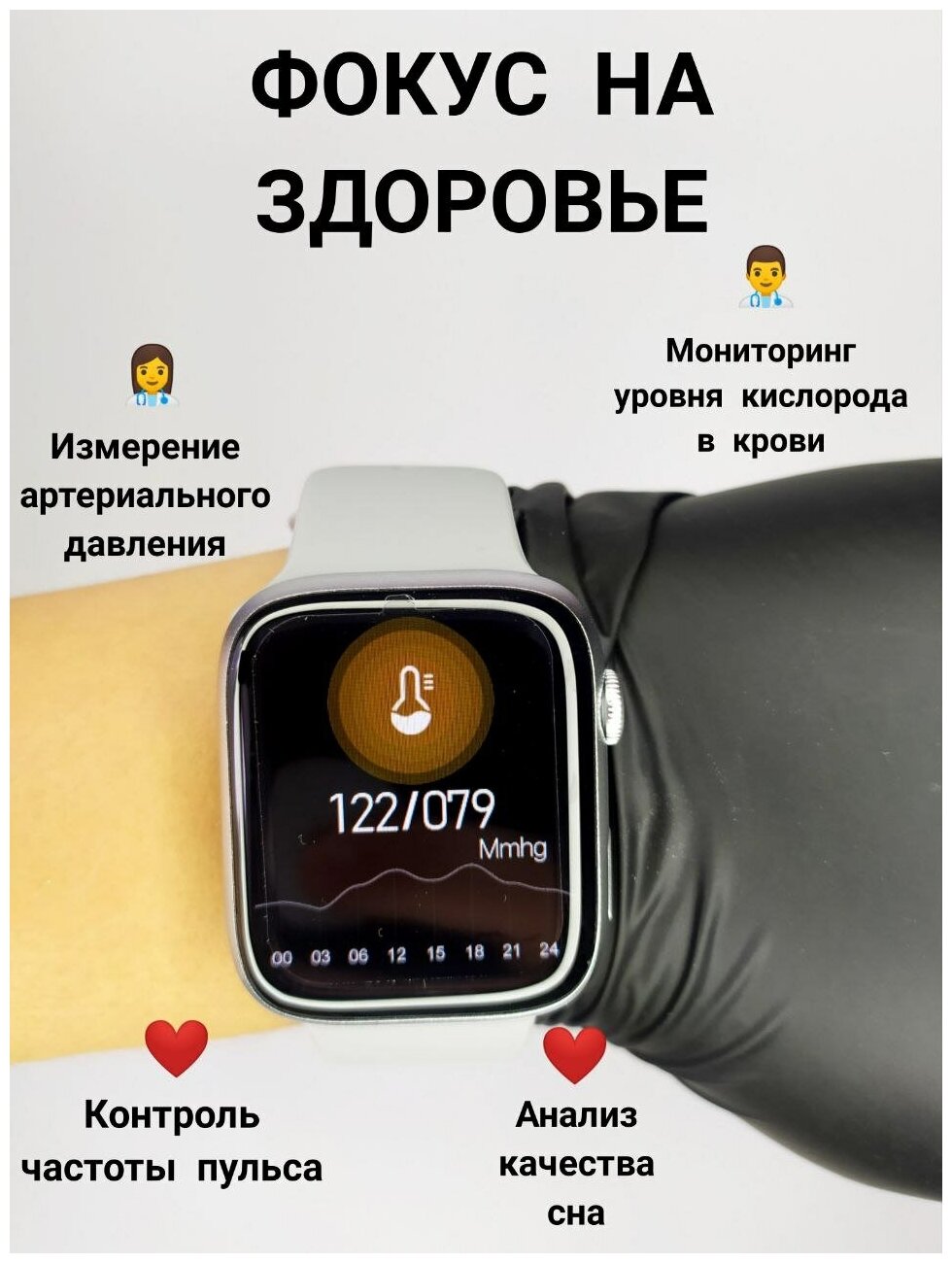| Мониторинг | ЭКГ, калорий, пульса, сна, температуры тела, термометр, тонометр, физической активности |