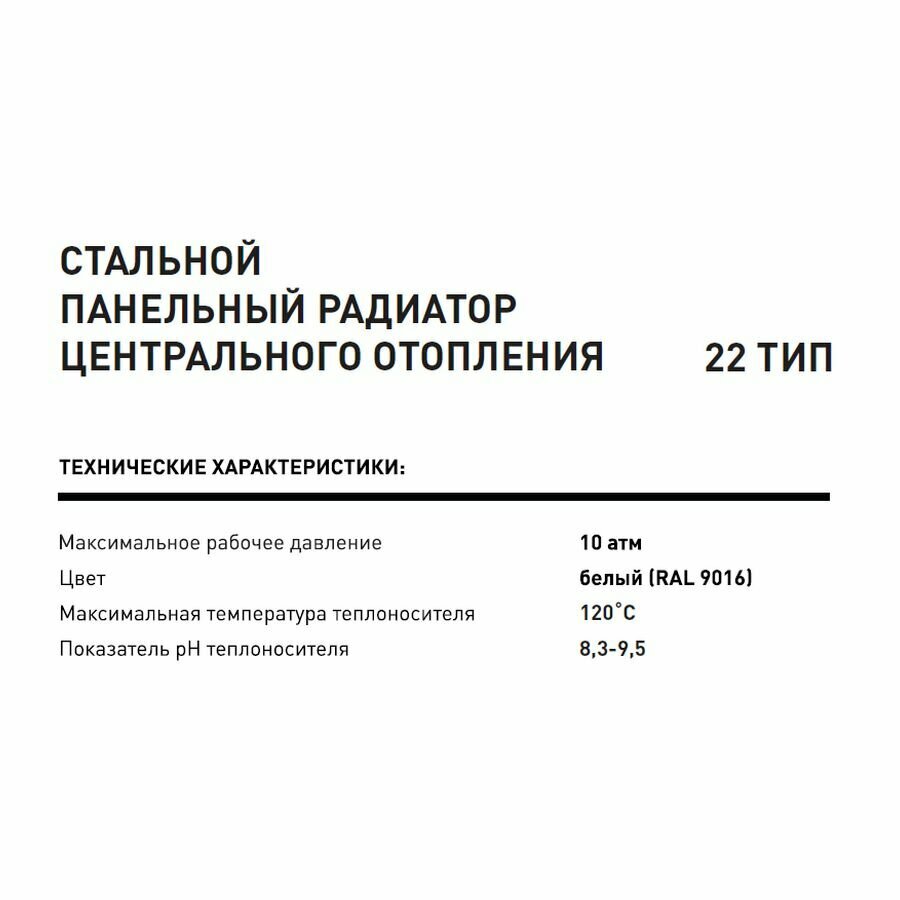 | Подробная комплектация | Радиатор в упаковке - 1 шт; Паспорт с гарантийным талоном - 1 шт; Кронштейн крепежный - 2 шт; Заглушка - 1 шт; Клапан воздуховыпускной (кран Маевского) - 1 шт; Дюбель с шурупом - 4 шт; Пластиковая клипса - 4 шт. |