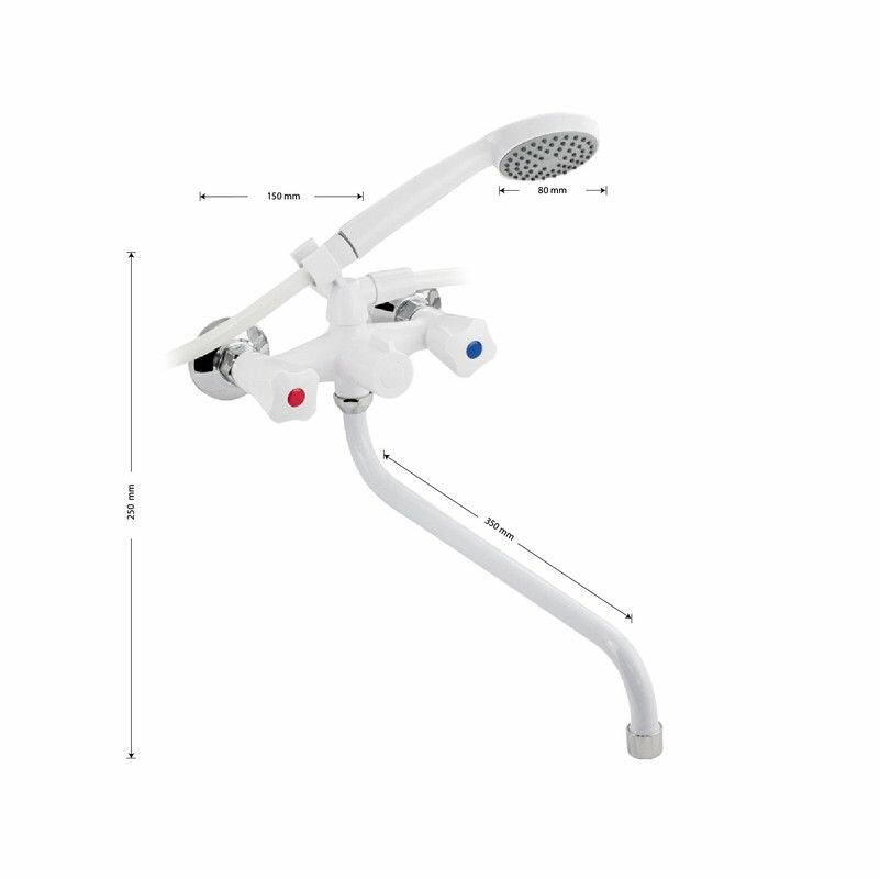 BRIMIX - Смеситель в ванную длинный излив, металлокерамика с шаровым переключением из высокопрочного пластика АБС - белый