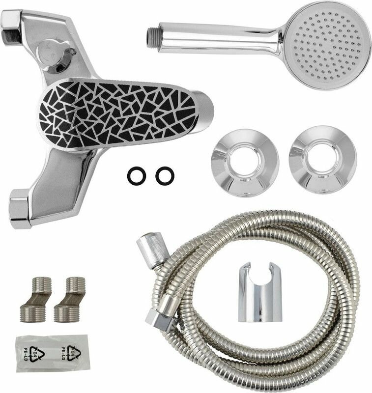 BRIMIX - Смеситель в ванную, шаровый, короткий излив, ручка с черной мозаикой интересное: