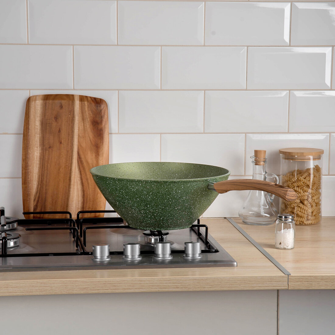 Сковорода WOK литая VARI Сила природы зеленый мрамор 28 см