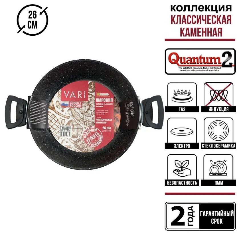 СохранитьЖаровня литая с антипригарным покрытием VARI "Классическая каменная" со съемными ручками, 26см интересное: