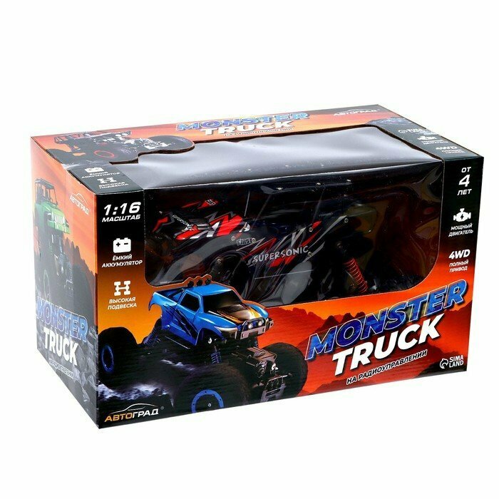 Автоград Джип радиоуправляемый Monster, 1:16, 4WD, работает от аккумулятора, цвет красный Автоград 7 .