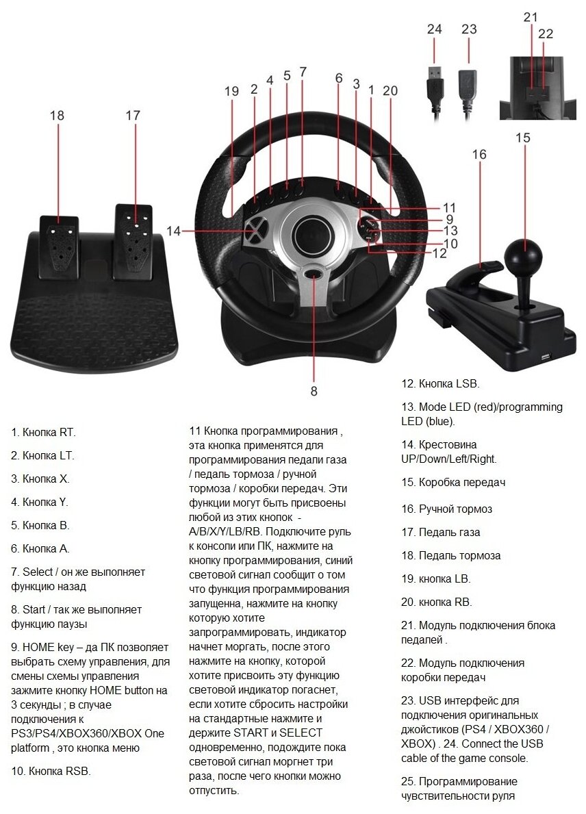 Руль игровой универсальный c педалями для Nintendo Switch/PS3/PS4/PC/Xbox360/XboxOne/Android (270 NS-9877) интересное: