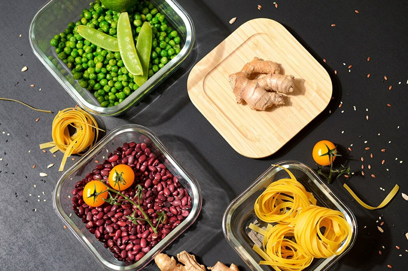 Набор стеклянных прямоугольных контейнеров Smart Solutions с бамбуковыми крышками, 3 шт. (SFE-SS-CN-GLS-BM-RC1.05)