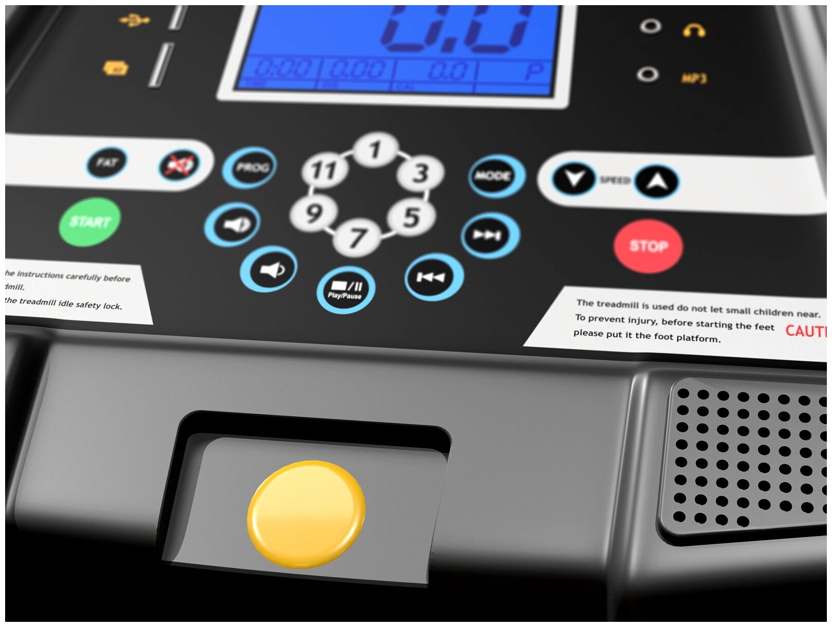 | Особенности | пиковая мощность двигателя 2.8 л.с.; 3 уровня угла наклона; дека 16 мм; сенсорные датчики на поручнях; LCD дисплей 4.72'' с голубой подсветкой; разъемы USB, SD, AUX; гидравлическая система складывания с функцией Easyhold; размер в сложенном виде (ДxШxВ): 773х660х1312 мм |