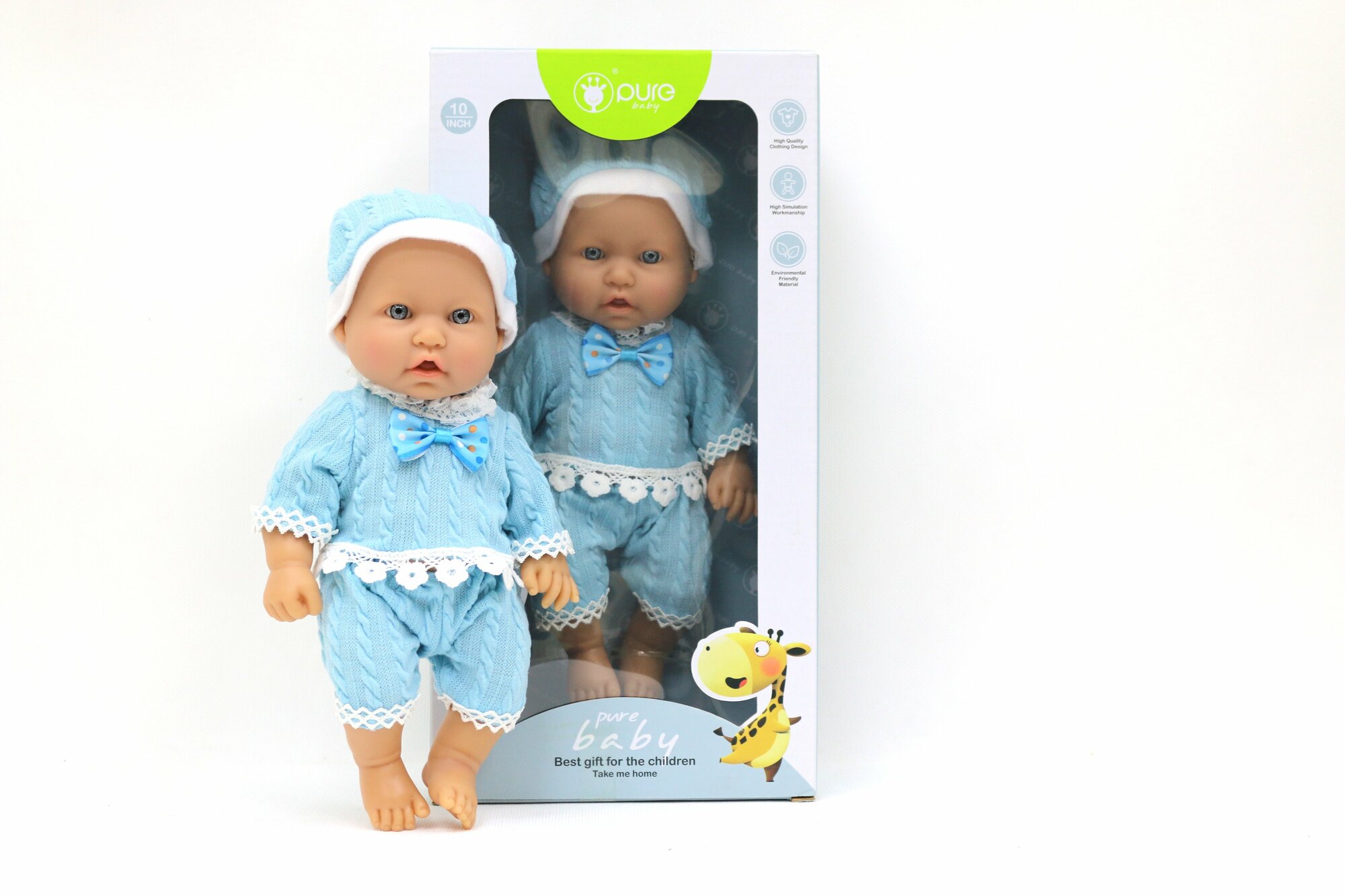 Кукла-пупс реалистичная, в голубом костюме, Pure Baby