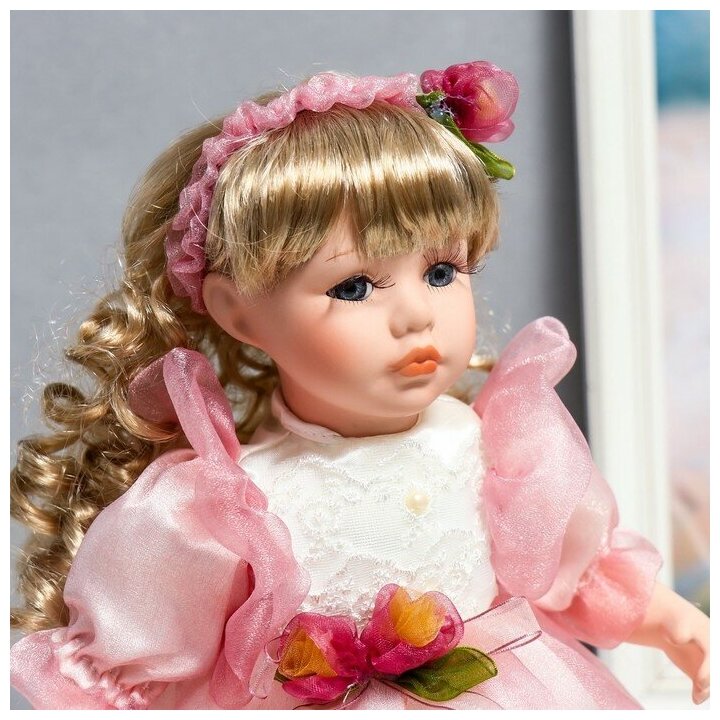 Кукла коллекционная керамика "Флора в бело-розовом платье и лентой на голове" 30 см 7390257 .