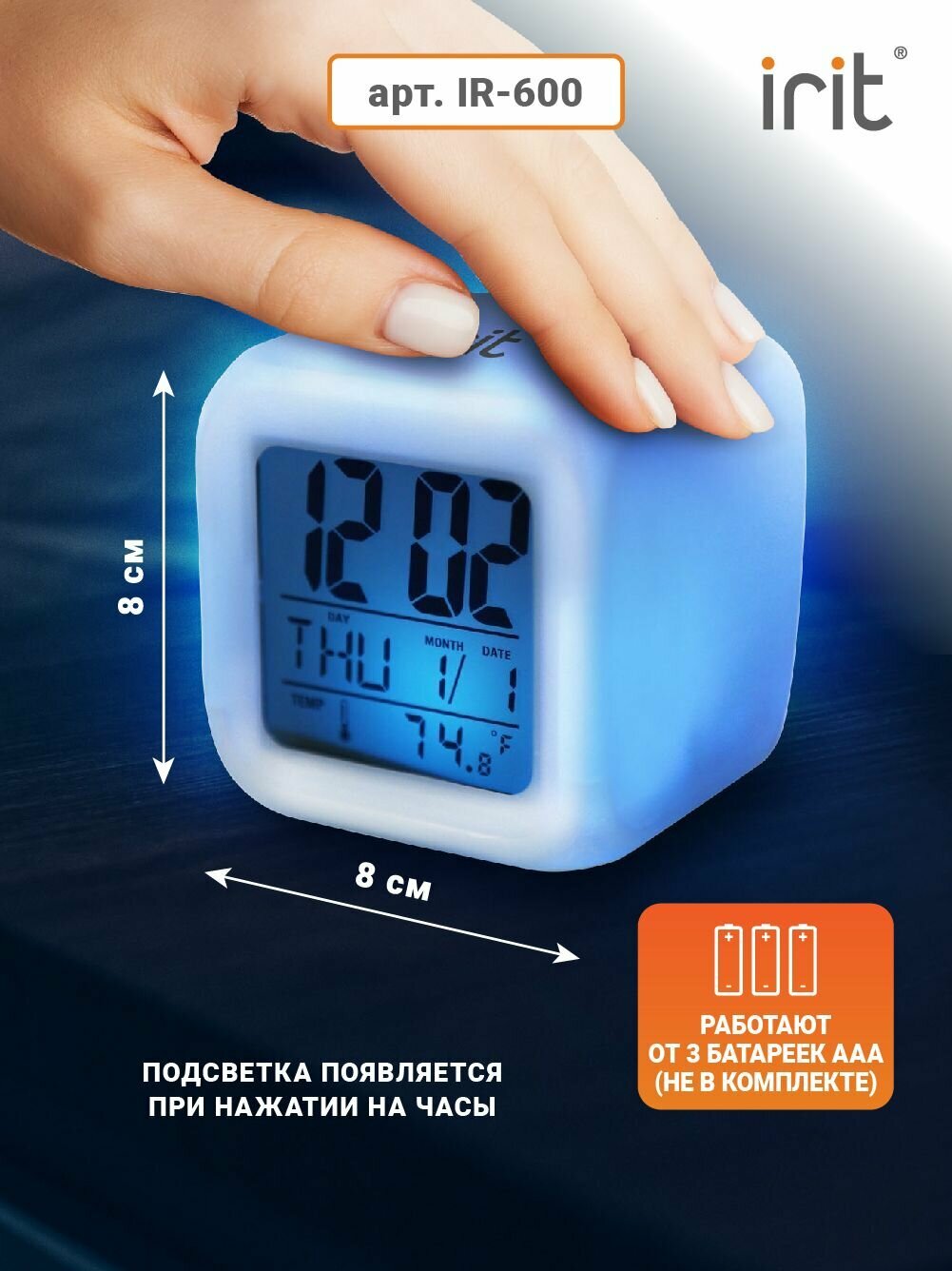Часы-будильник Irit IR-600, календарь, температура, подсветка, 3хААА, белые интересное: